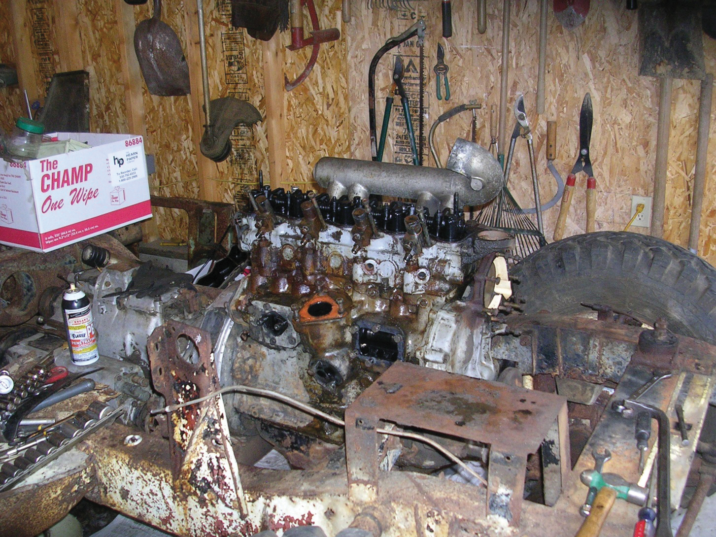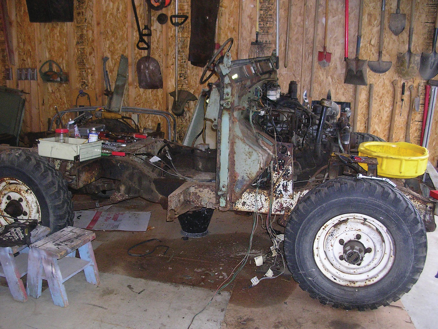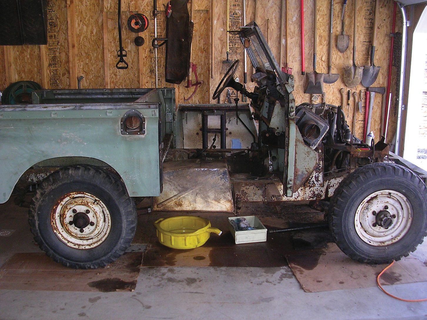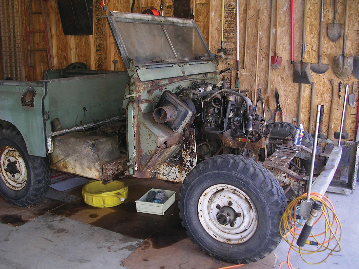 The Land Rover meant so much to the family that Ray knew he had to restore it. It had been parked under a tree for decades, so it was trailered to Ray’s newly completed garage. Ray remembers, “It looks pretty good from a distance, but I soon realized that the frame was rusted, the engine was frozen, the bulkhead was rusted; it was as bad as it could get—except for the aluminum parts.”