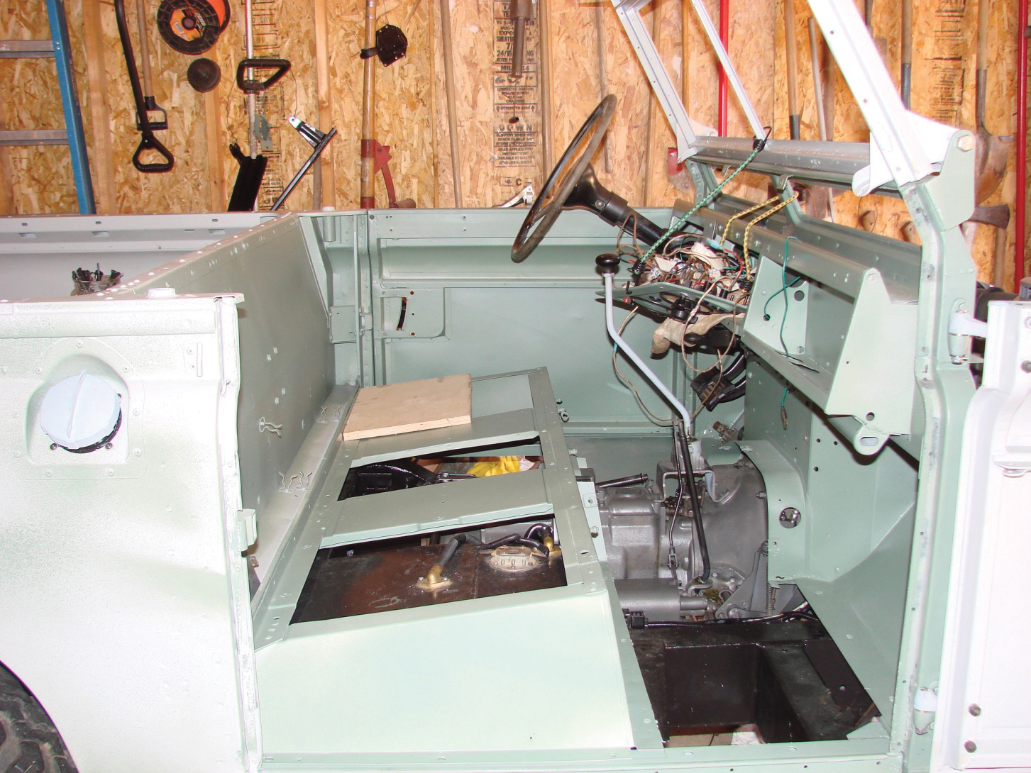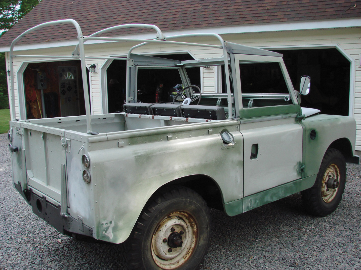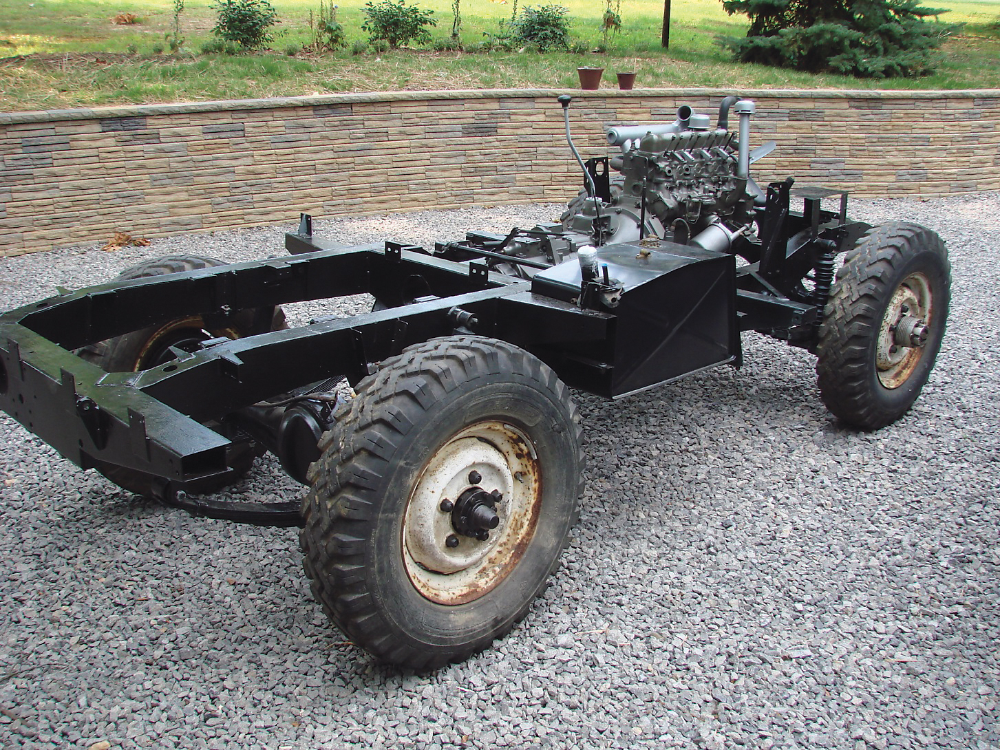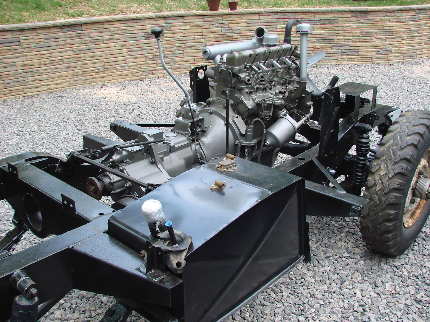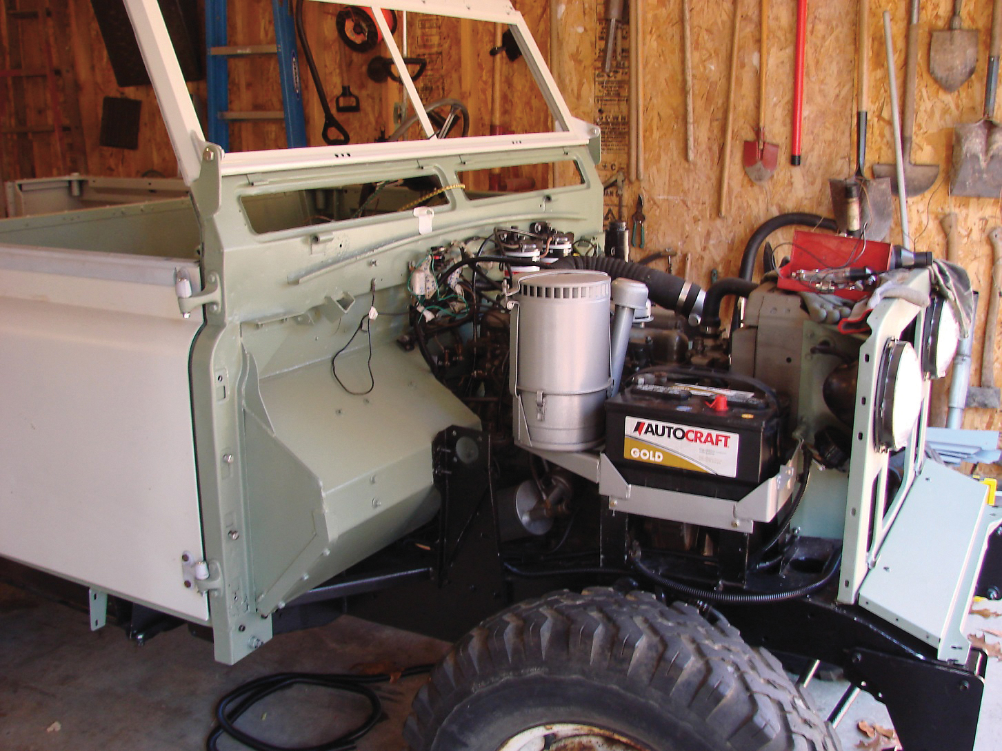 “I saved as much as I could, including the unique exhaust that Bimmer created to pull the diesel fumes away from the passengers. I purchased a new frame, standard springs, a new wiring harness and a lot of other parts from Rovers North. I thought I had the job done in four years, until I found that not replacing the oil pump in the engine caused a spun bearing. I had the crank reground and installed new bearings and an oil pump. The transfer case received new bearings, but the transmission seemed fine. The odometer indicated 37,000 original miles, but I’m guessing that it was more like 50,000. When I started it up again for the first time, I was sweating bullets,” he said. “My heart was in my throat.”