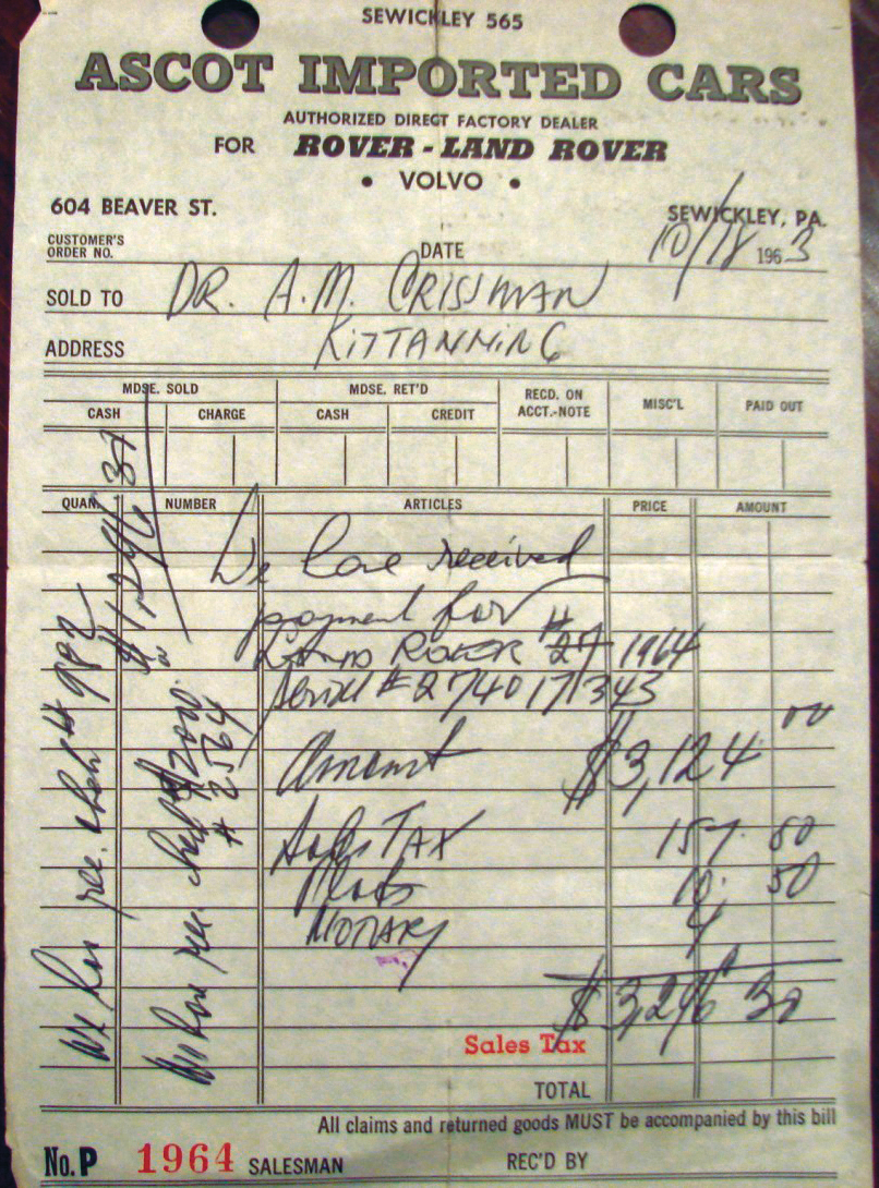 The salesman tried to dissuade him, but Bimmer ordered a diesel Series II-A. He picked it up at the docks in Newark, NJ, and drove it back to the Pittsburgh area.