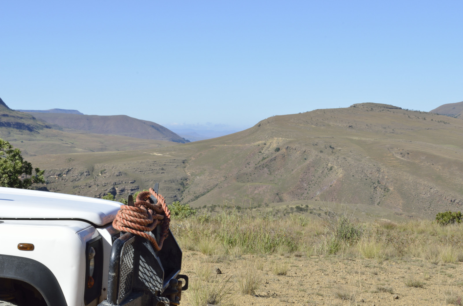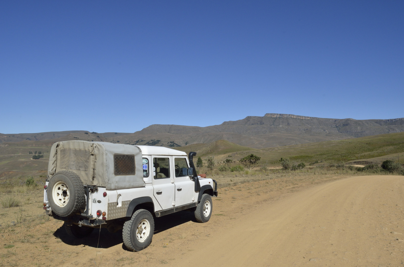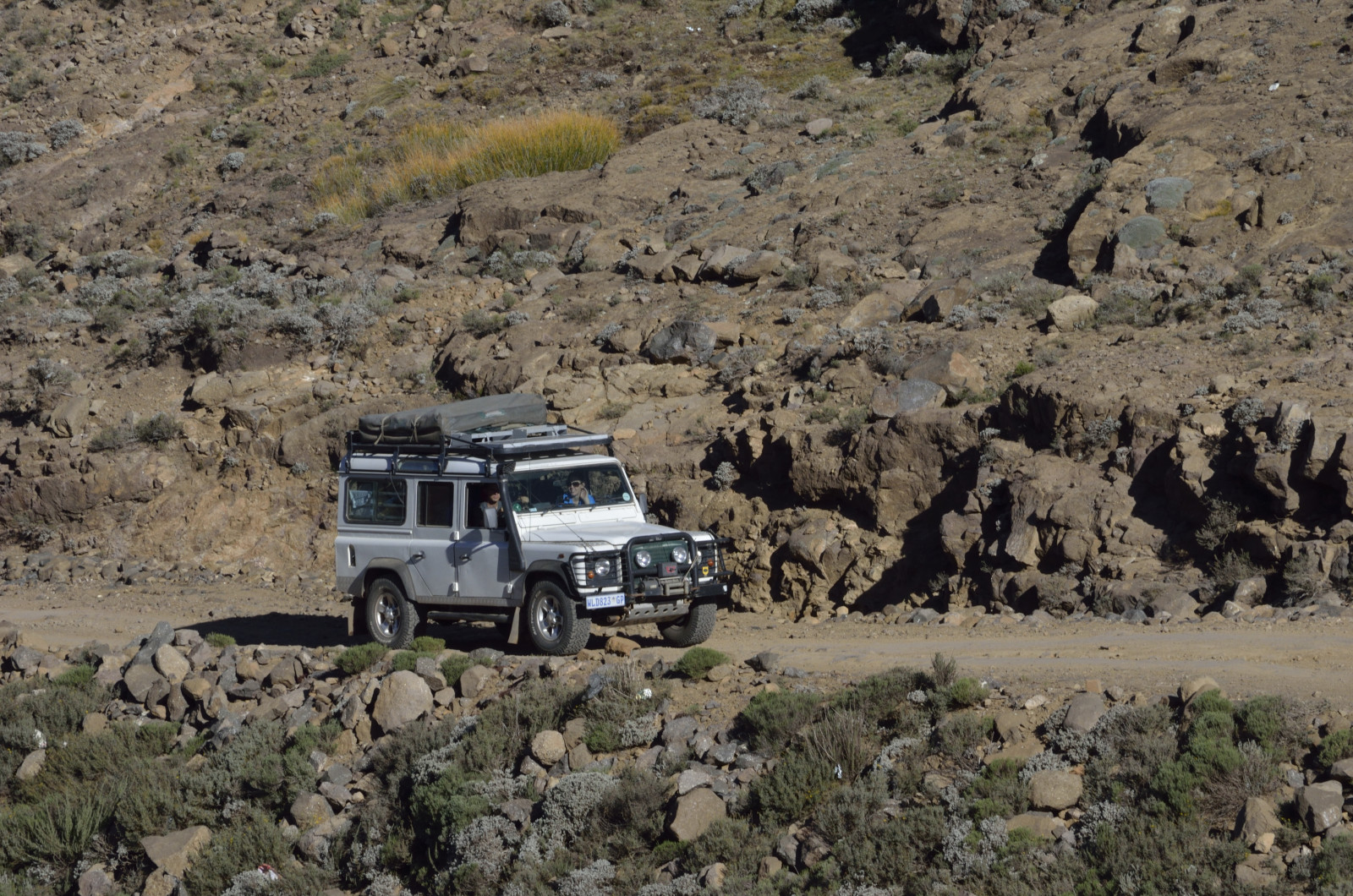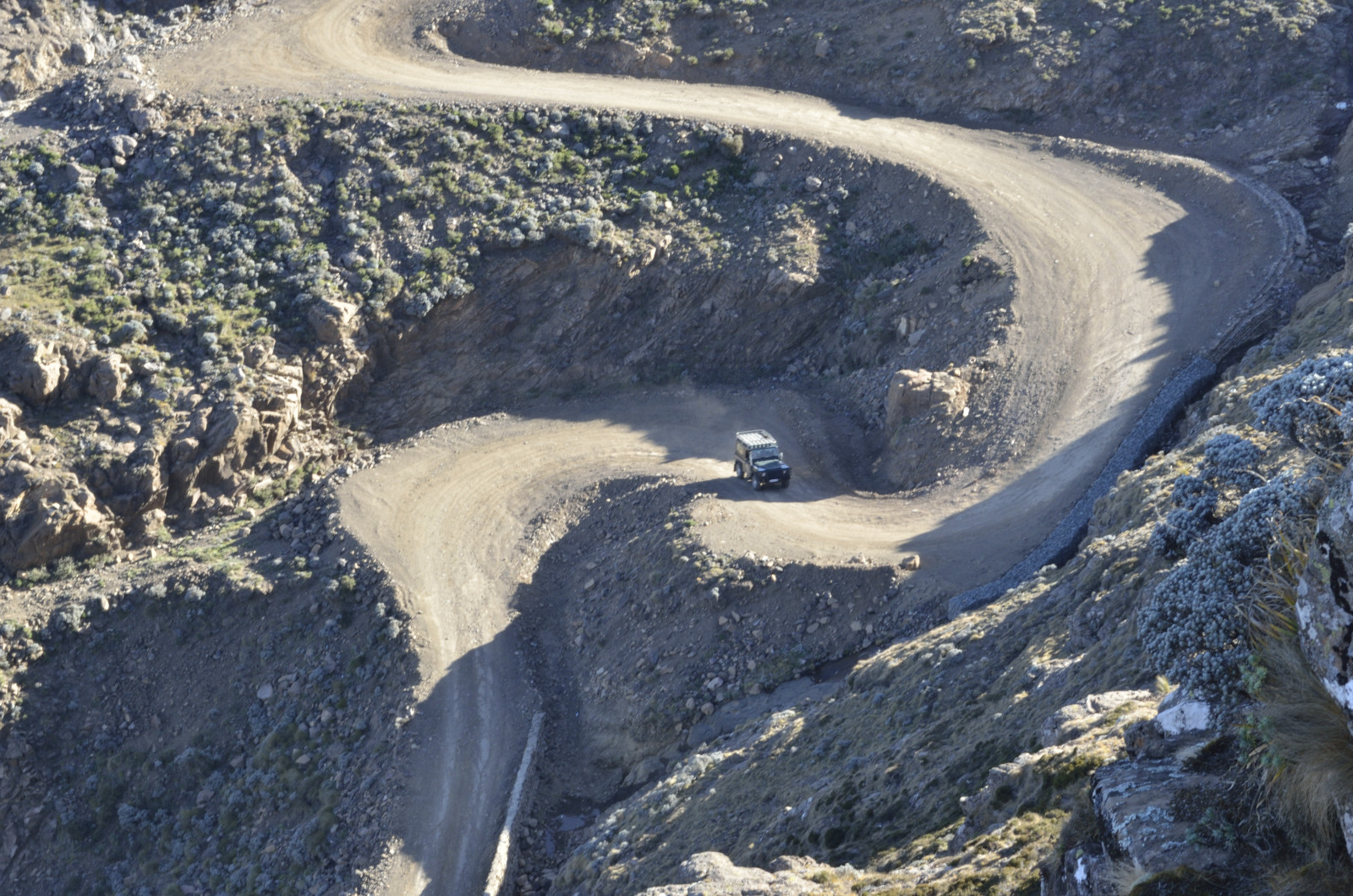 From the Midlands we ventured up into the quiet mountain kingdom of Lesotho. The most accessible route is via Sani Pass, a craggy breach in the fortress of the Drakensberg. A steep, primitive track carved into the rocky slopes ascends to the pass—with no guardrails. Low range second gear brought us to the border post without drama, catching our breath at 9,300 feet. Wreckage of a destroyed vehicle was a sobering reminder of the route’s hazards.
