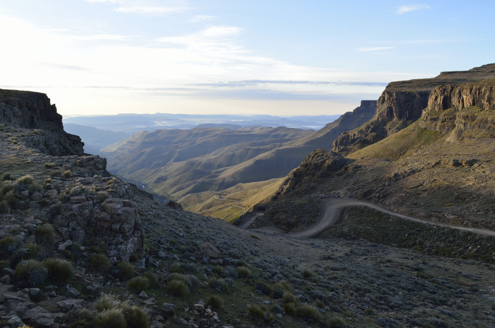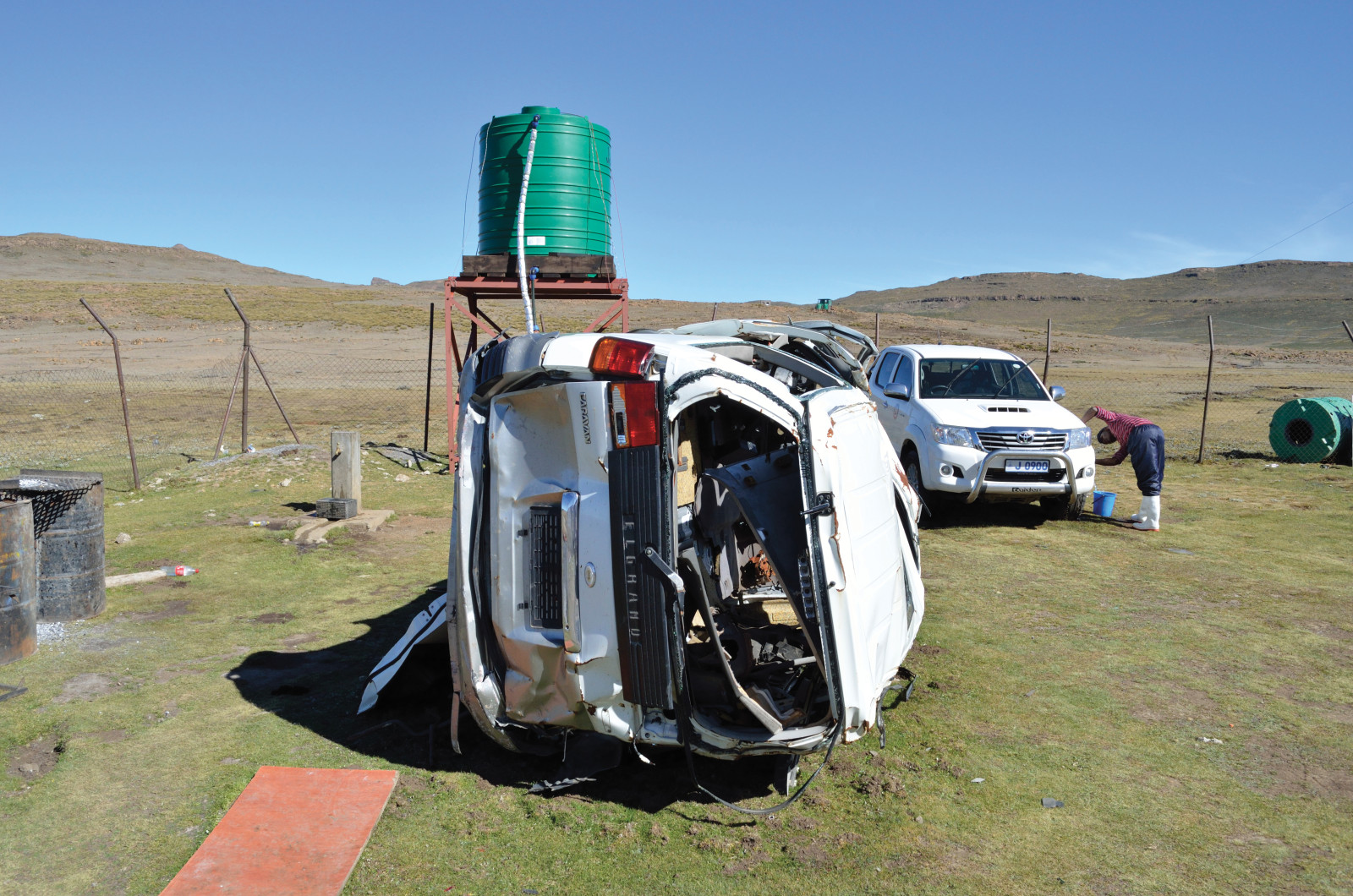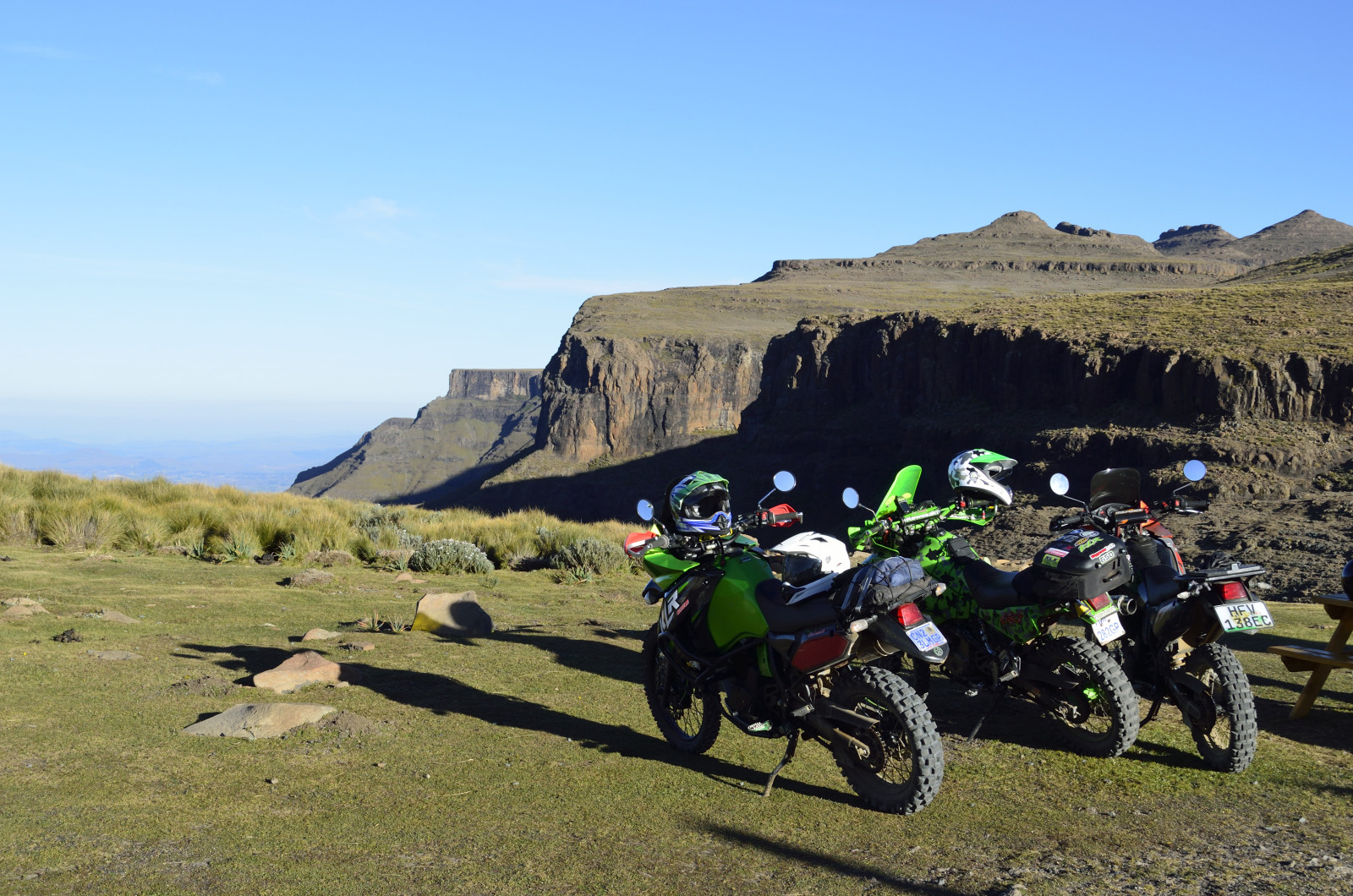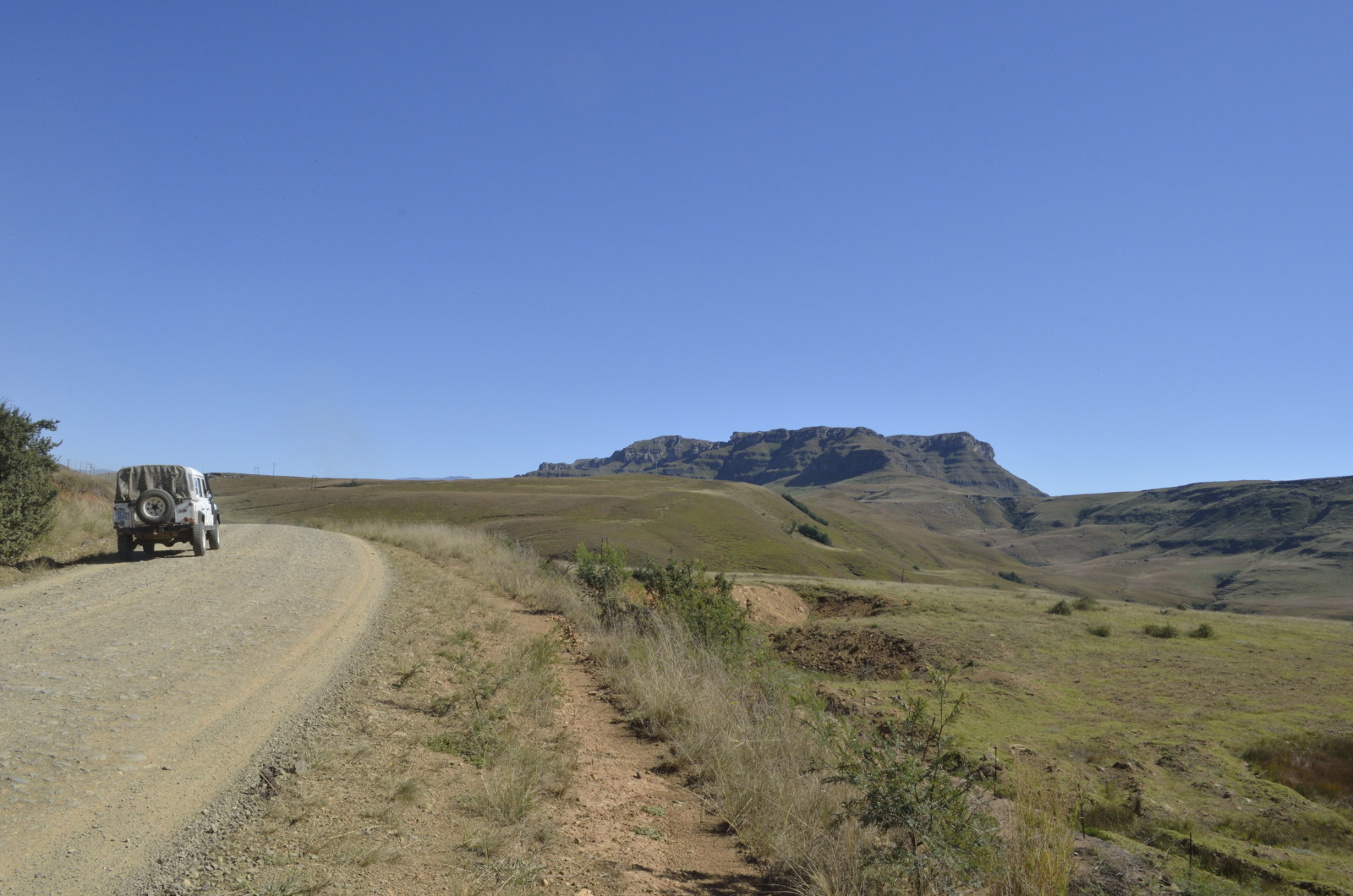 From the Midlands we ventured up into the quiet mountain kingdom of Lesotho. The most accessible route is via Sani Pass, a craggy breach in the fortress of the Drakensberg. A steep, primitive track carved into the rocky slopes ascends to the pass—with no guardrails. Low range second gear brought us to the border post without drama, catching our breath at 9,300 feet. Wreckage of a destroyed vehicle was a sobering reminder of the route’s hazards.