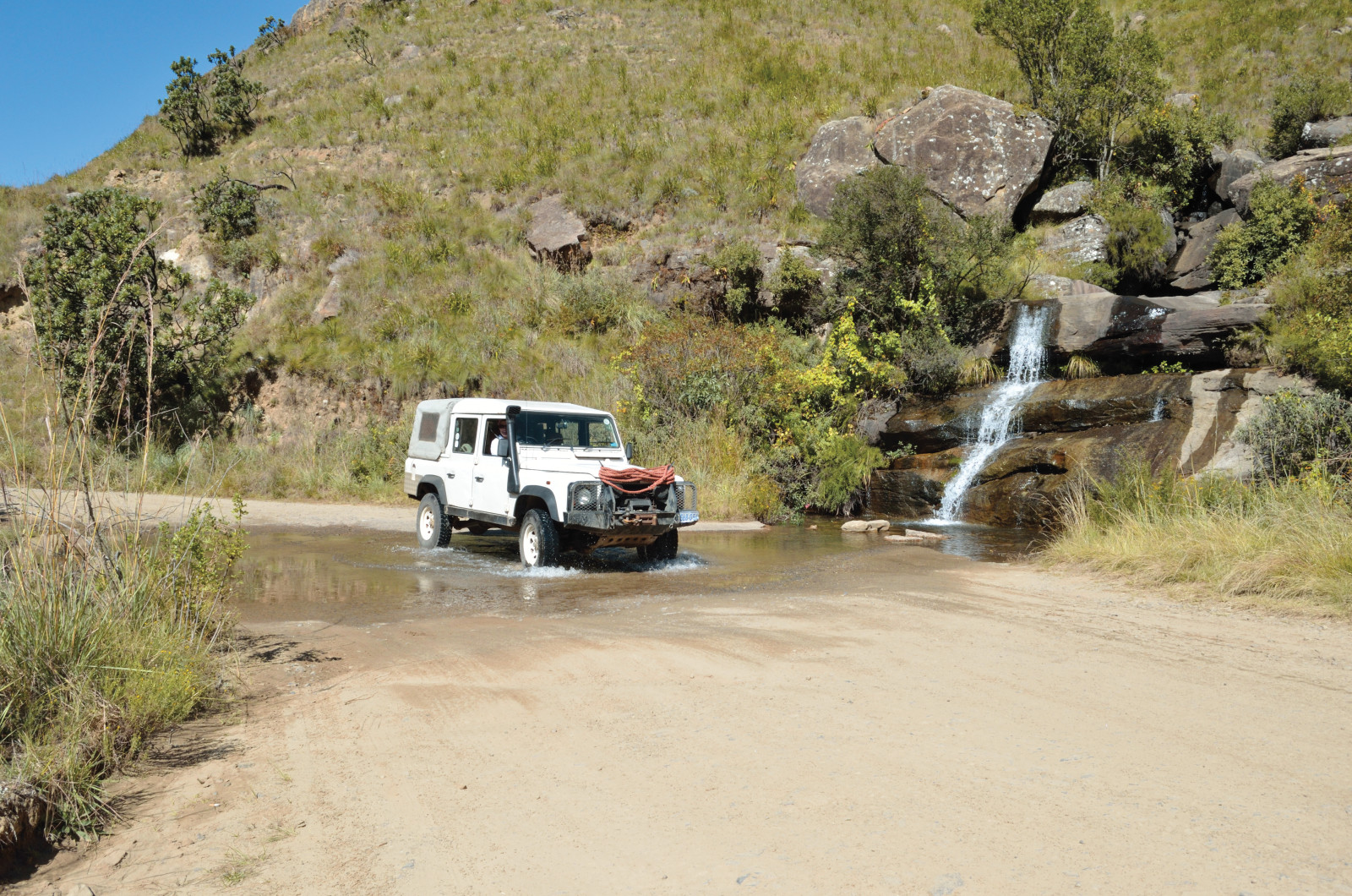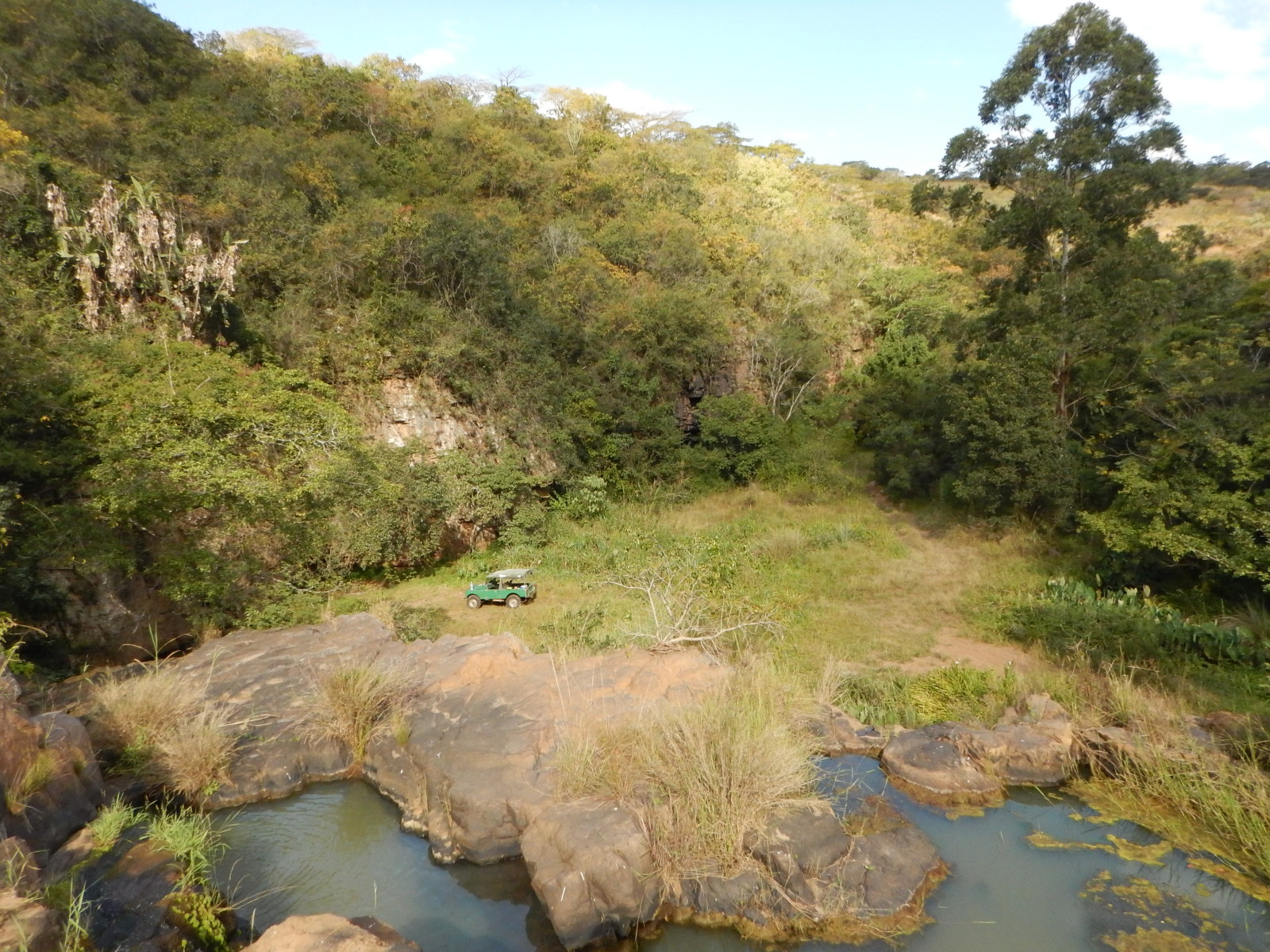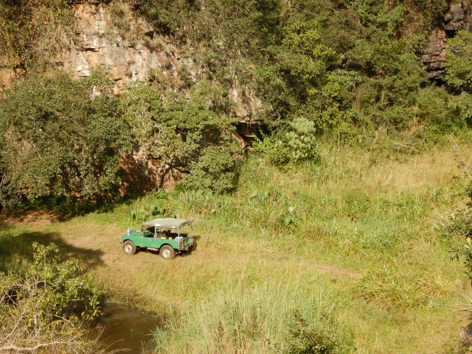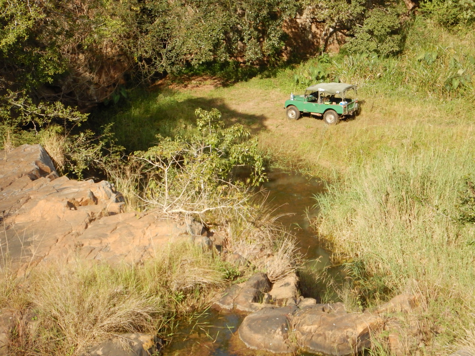 All too soon we left for Durban, but Kenneth had another surprise in store. Once again we piled into his Series 1 and he took us to his favorite local 4×4 trail near Shongweni. Through streams and up rocky embankments we crawled to reach a beautiful amphitheater with a waterfall splashing into a pool. Jenna and I took turns driving. The strength, finesse, and coordination required to control the 60-year old Landy through that terrain was surprising, and gave me a new appreciation for the amenities of my own Discovery 1 (like power steering and disc brakes).
