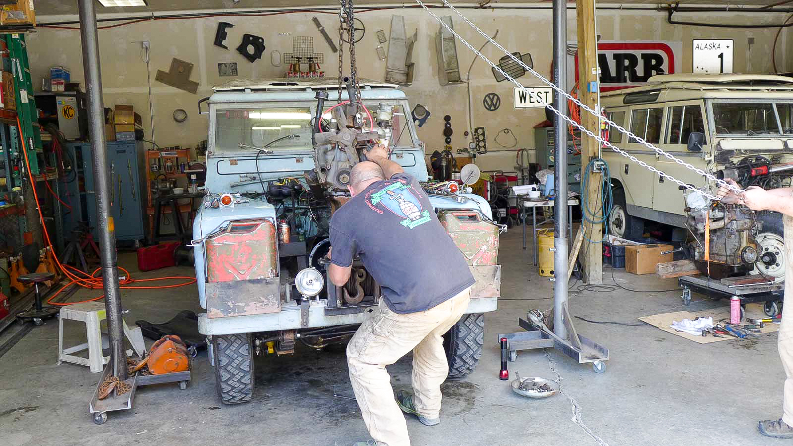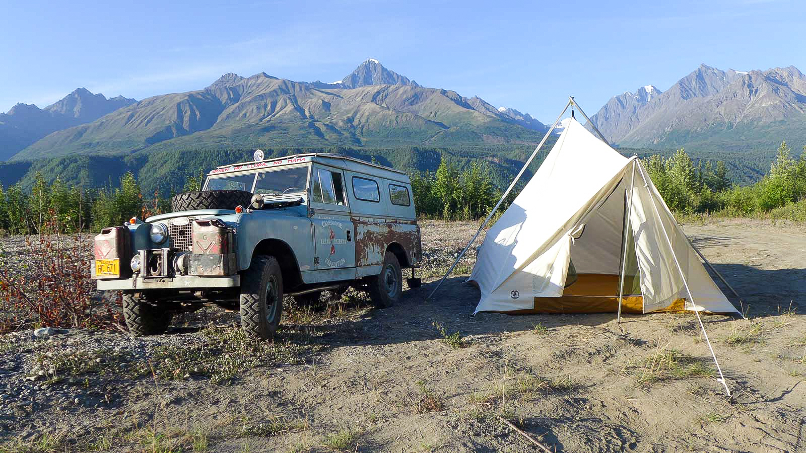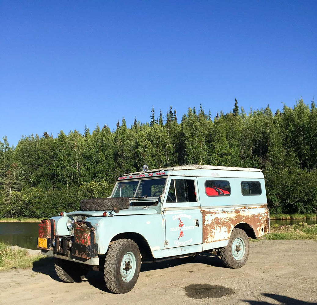 In 2010, I was driving my ‘63 109” when a couple of guys in a pickup frantically called out, ‘Pull over!’ They had a Land Rover for sale, but they’d never been able to get it running properly. I drove out to Wasilla where it had been sitting for 10 years. The head was off the engine and the body was quite rough, but it had the genuine hydraulic Land Rover winch, so I bought it. A faded-out expedition logo was visible on one door. I tried researching it through some old National Geographics, but discovered nothing until I read an article in Land Rover Owner International; that’s when realized that I owned the very Land Rover used in the Cambridge Trans-America Expedition! I found Ben Mackworth-Praed online first, and then followed with Martin and Michael Andrews. I found their story very interesting, but I had to balance my Land Rover life, so I basically did a trade with Ed Angel for my current ’67 NADA 109. Ed then took over the expedition Land Rover.”