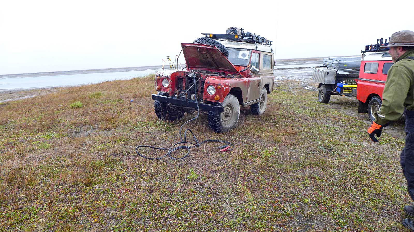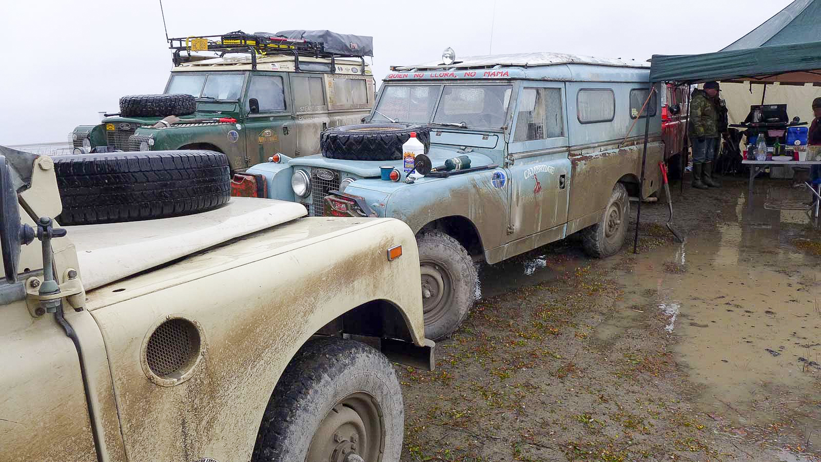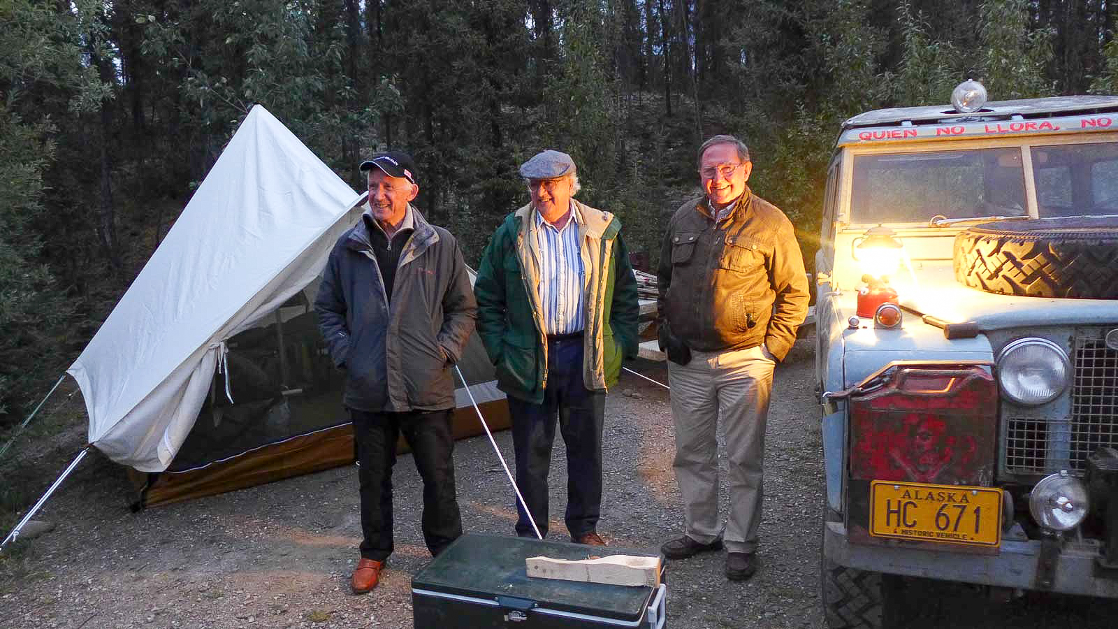In 1960, four British university graduates—Martin Hugh-Jones, Andrew Bacon, Michael Andrews and Ben Macworth-Praed—shipped a Land Rover to Argentina to start the “Cambridge Trans-American Expedition” from the Tierra del Fuego to the Arctic Circle. Fourty-three thousand miles in, they succumb to fatigue, weather and finances, and sell the Land Rover in Fairbanks to fund their airline tickets home. Fifty-five years later, and a group of determined enthusiasts, led by Ed Angel and photojournalist Michael Rudd, would work together to bring three of the surviving adventurers back to Alaska to complete the trip in their 1960 refurbished Series II.