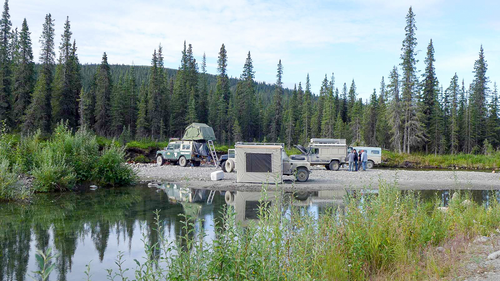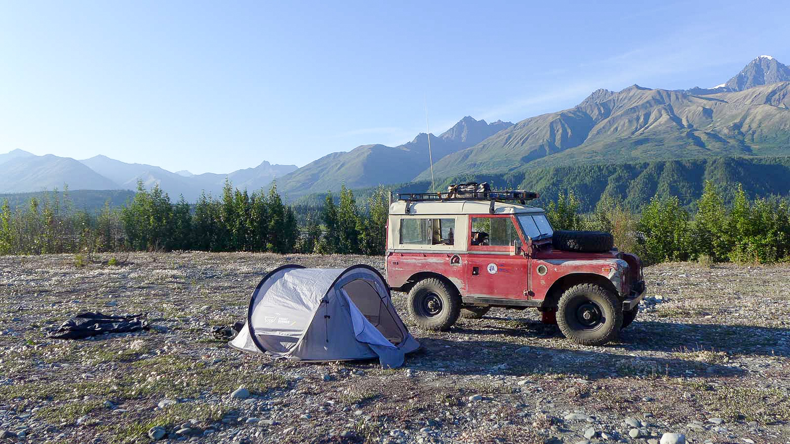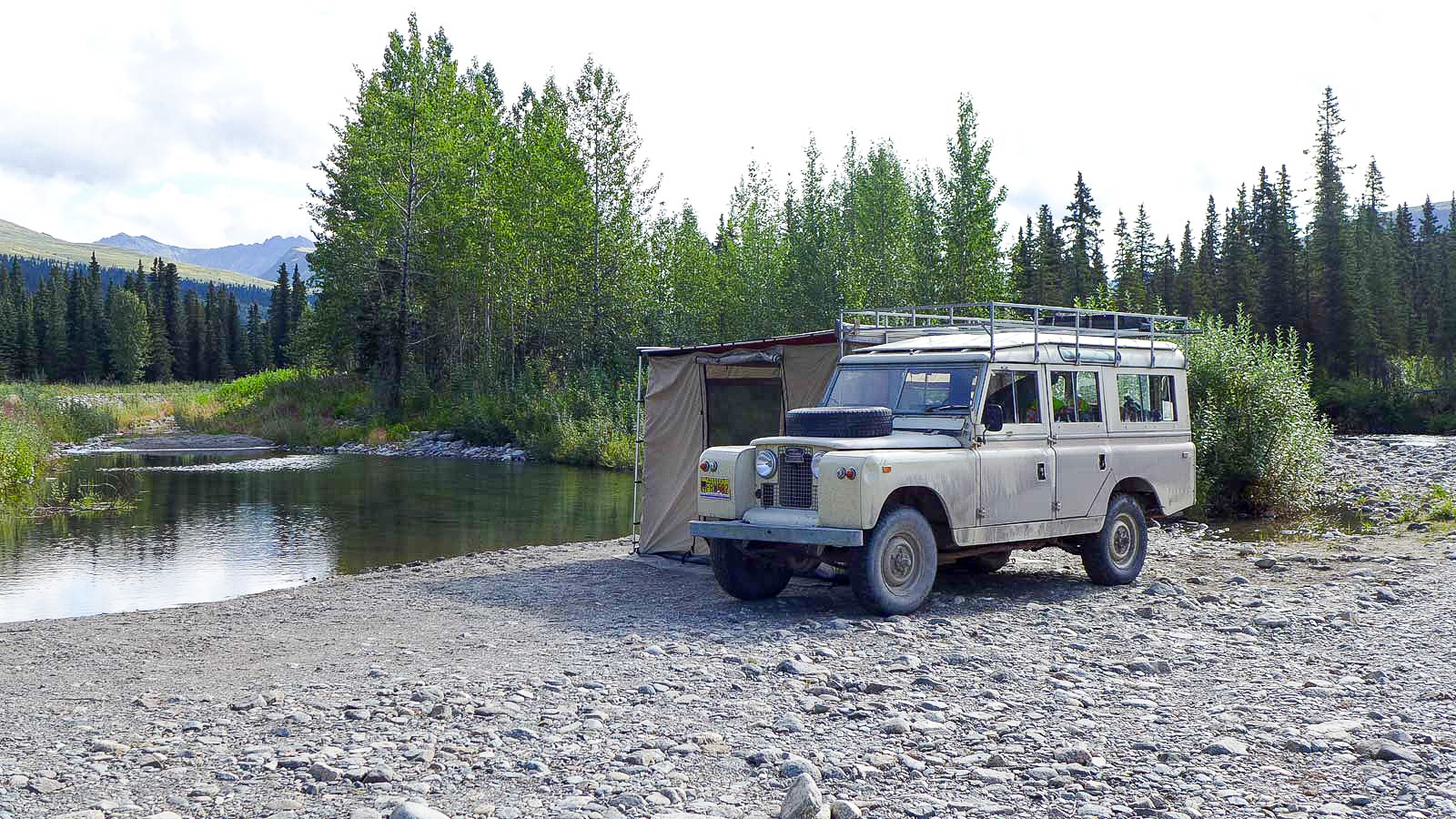 In 1960, four British university graduates—Martin Hugh-Jones, Andrew Bacon, Michael Andrews and Ben Macworth-Praed—shipped a Land Rover to Argentina to start the “Cambridge Trans-American Expedition” from the Tierra del Fuego to the Arctic Circle. Fourty-three thousand miles in, they succumb to fatigue, weather and finances, and sell the Land Rover in Fairbanks to fund their airline tickets home. Fifty-five years later, and a group of determined enthusiasts, led by Ed Angel and photojournalist Michael Rudd, would work together to bring three of the surviving adventurers back to Alaska to complete the trip in their 1960 refurbished Series II.