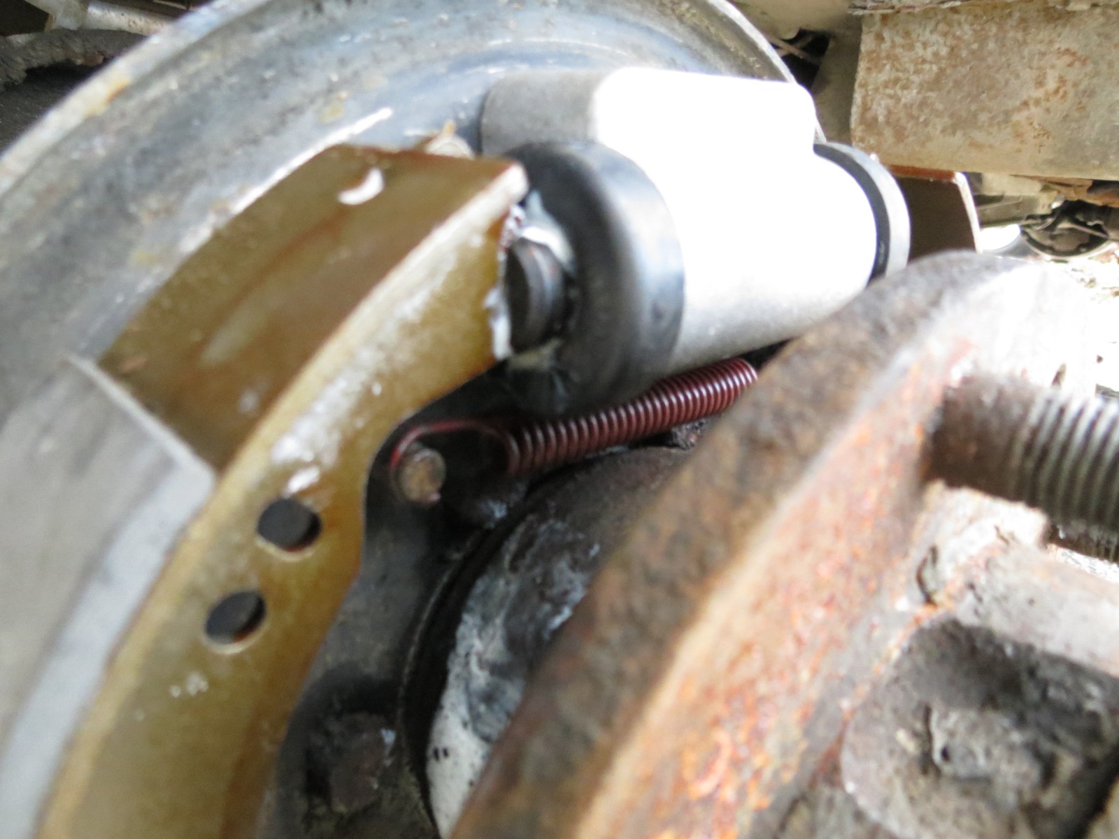 Life with my Land Rover has necessitated a mechanical learning curve on my part, much to the amusement of the Rovers North technical staff. Most recently a slow loss of brake fluid and diminished braking action forced me to look underneath, where I discovered a rear wheel brake cylinder leak. I ordered the cylinder, new shoes and a spring set from Rovers North. Removing the wheel and drum uncovered quite a layer of La Brea tar pits ooze on the shoes and a broken top brake spring. Even after 25 years I still get confused over the placement of the top spring, but a quick check of the tech tips on the Rovers North website straightened me out—for now.