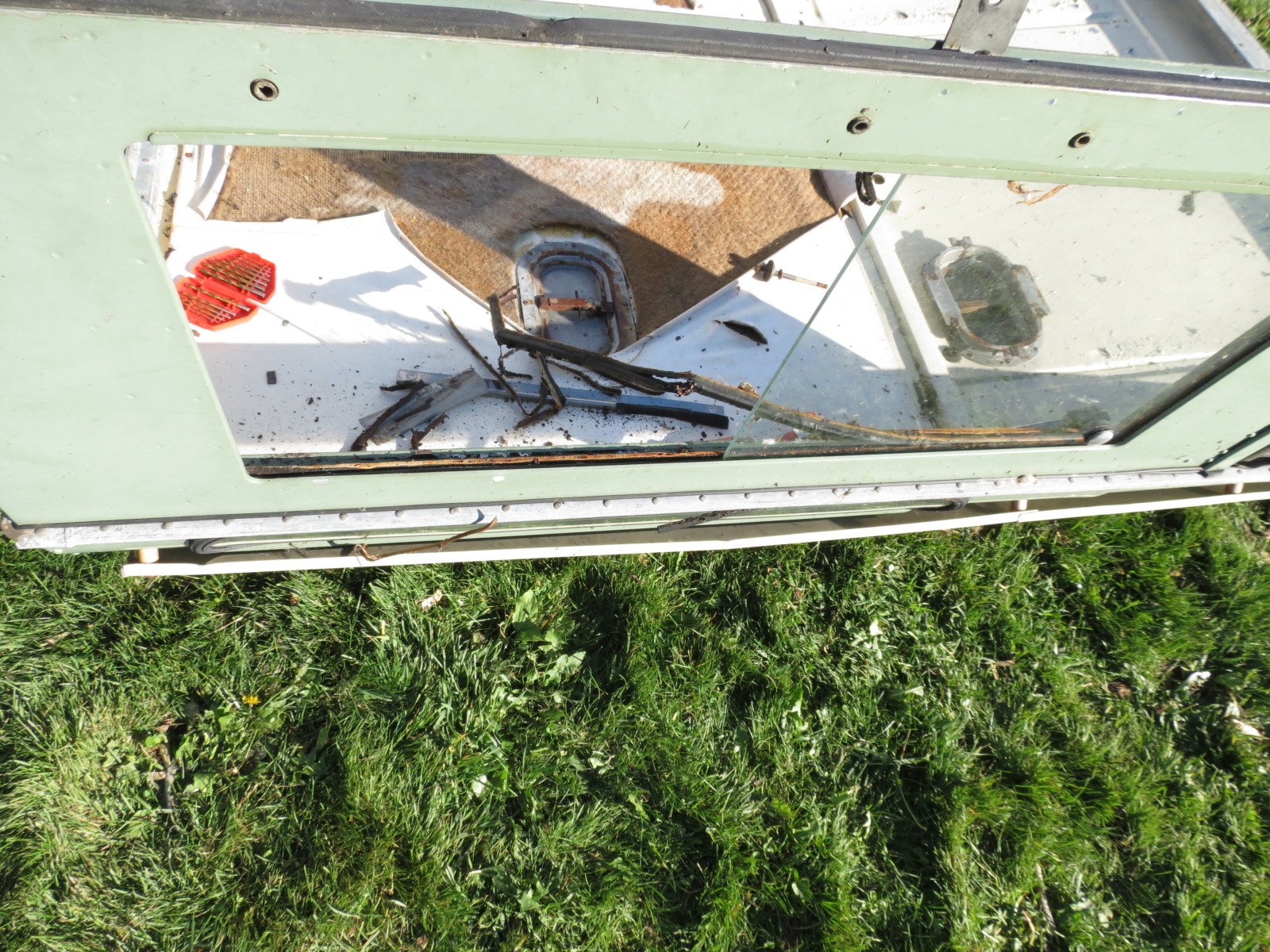 Last winter I decided to delay a necessary repair of my Series II- A’s safari top and run a canvas top all winter. Untying the rear window to open the tailgate every time I needed to access the rear proved a pain in the severe winter of 2014-15. So this winter, I determined the make the necessary window track repairs on the safari top and save the canvas top for next summer. After all, I had bought the mouse fur window track kit two years ago, and the entire job is much easier when you can turn the top upside down, too. A buddy helped me carry the top from its storage spot to my front lawn for