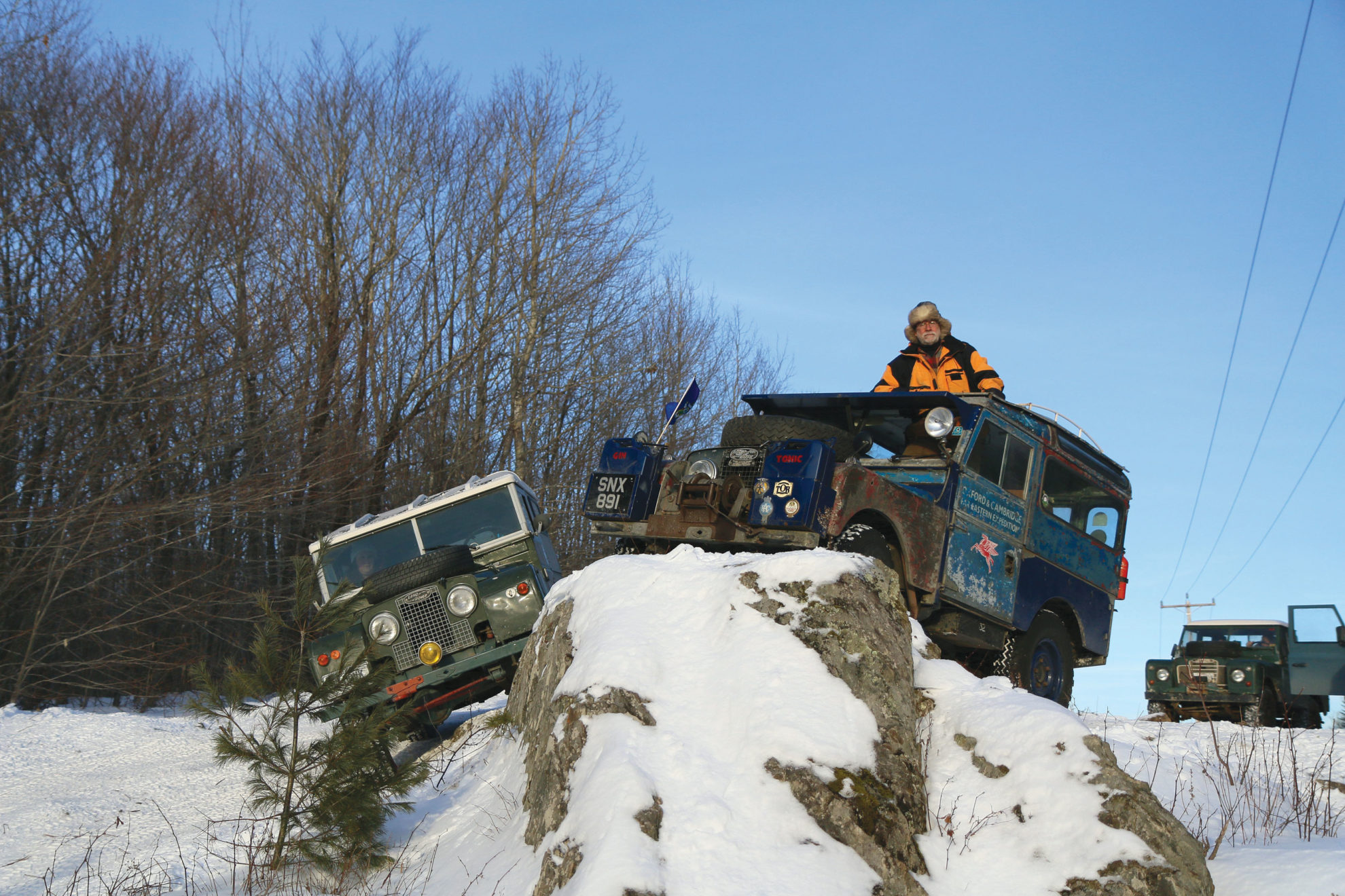 Fueled up with friendship and food, we arrived 30 minutes later at the staging area, the fields surrounding the house of organizer Bruce Fowler. An impressive spectacle unfolded before my eyes – Land Rovers of every vintage, from early Series I’s to modern Range Rovers. The 220 registered Land Rovers made it the largest-ever Winter Romp.