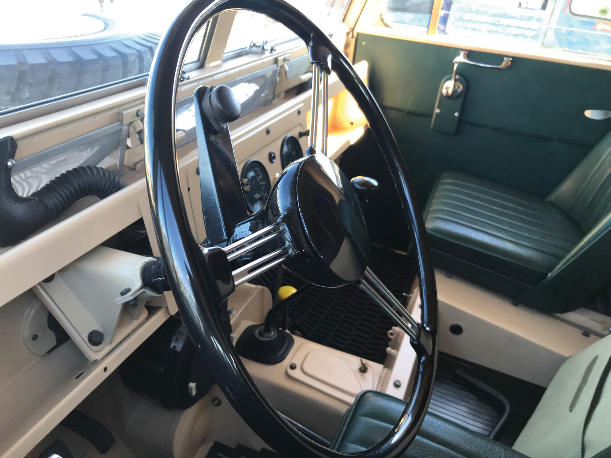 Near the end of Sunday, Land Rover Classic had 10 vehicles to move a long distance and not enough drivers. That got me behind the steering wheel of “Grizzly Torque,” the Canadian-based Series I 107” owned and maintained by Tyler Lucks. Settling into the non-adjustable seats and non-synchro first to second gearbox, I felt right at home. It ran smoothly and handled deftly – well, like a long wheelbase Series I, anyway. With time, I felt it could have taken me back home to Maine. Shamelessly, I waved to the applauding throngs as if it were my own.