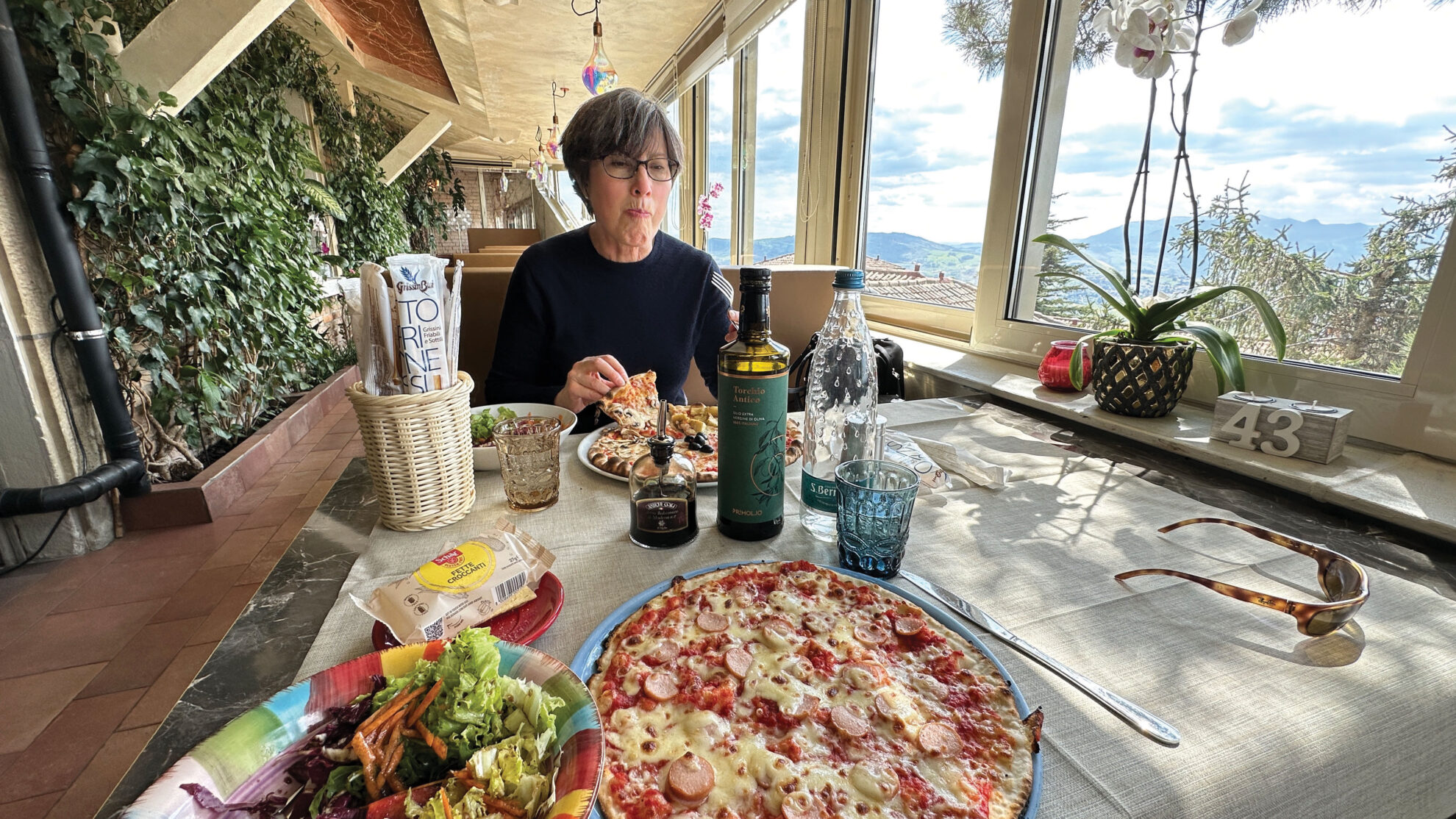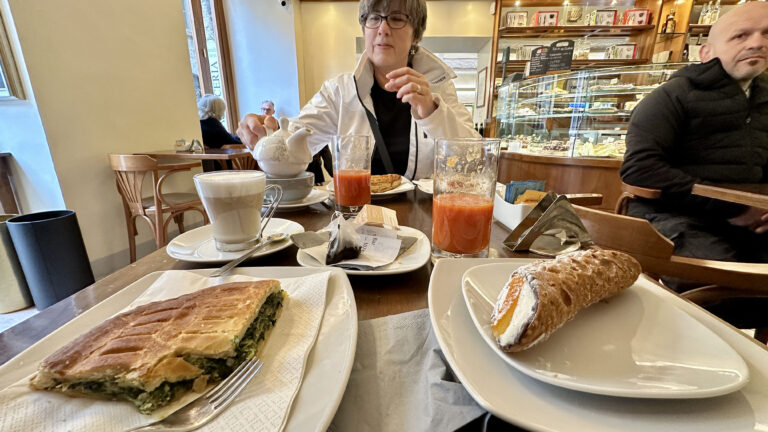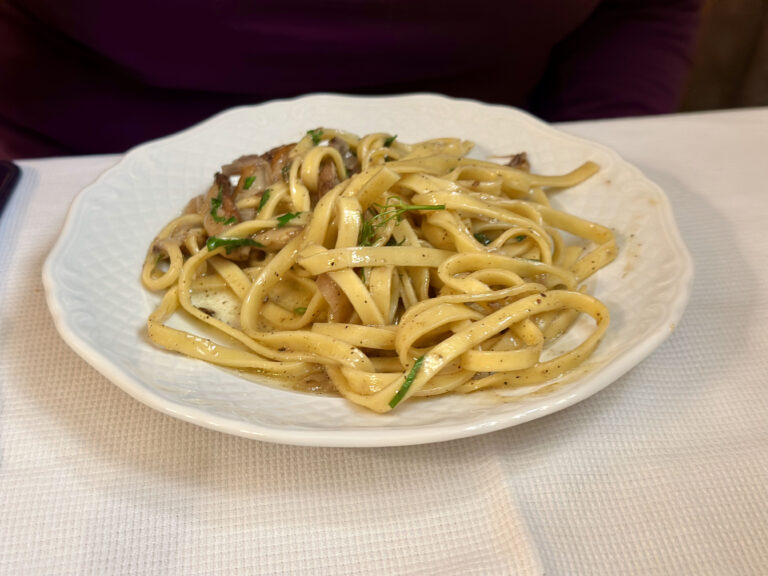 Weather for the first week was beautiful, cool and sunny, after that, rainy and cooler, then back to nice. In Siena, we rented a small Renault Captur SUV petrol 3-cylinder turbo, 6-speed manual transmission (very entertaining to drive in extreme downpours on super narrow steep roads!). We drove to fogged in, medieval walled cities nestled on the tops of mountains: Cortona, an Abbey perched up on the hillside (Abbazia Di Monte Oliveto Maggiore — with Monks producing wine since 1319), Montepulciano and Sensano, Volterra. The latter two were working Agriturismo vineyards — Villa Nottola in Montepulciano and Sant’Antonio in Sensano, Volterra. Then off to Lucca for a few nights, Pisa for the day, Florence for several nights and back to Milan and finally back home. A whirlwind adventure of food, sights and sensations in Italy.
