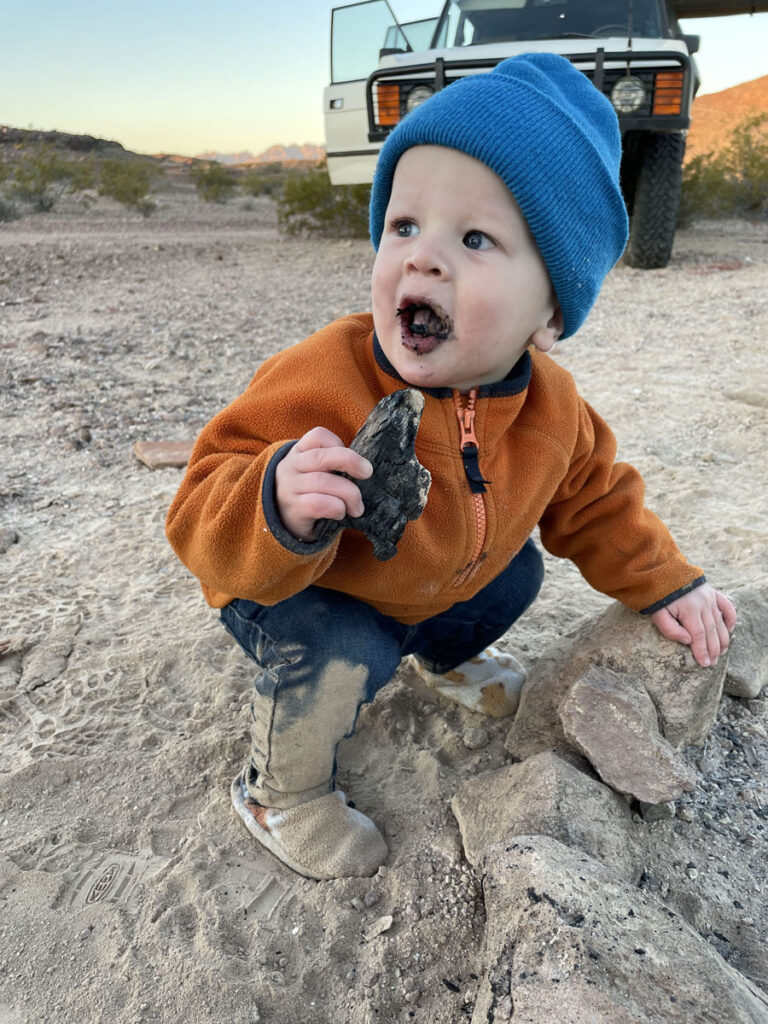 The thrill of seeing the world through Henry’s eyes has always been my favorite part. Instead of sitting in front of a screen, he climbed rocks, spotted wildlife, and helped set up camp. We witnessed lessons of resilience, problem-solving, and a deep respect for nature. In the early days we tried to corral Henry in a playpen, but this child loved to wander. Toys and soft items only kept his attention for so long; he loved to roam and find his own adventure. Being flexible was the best lesson Henry has taught us.