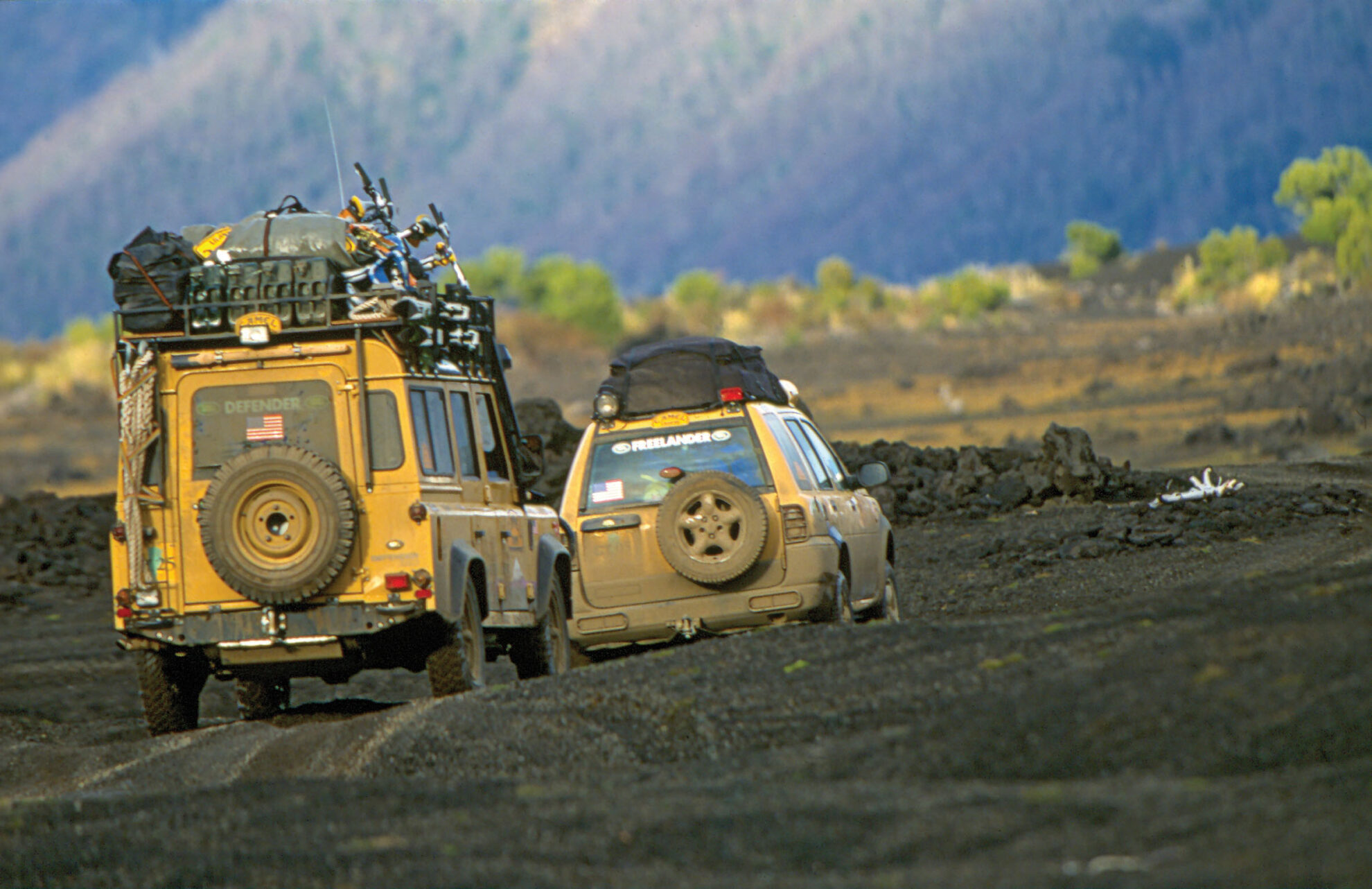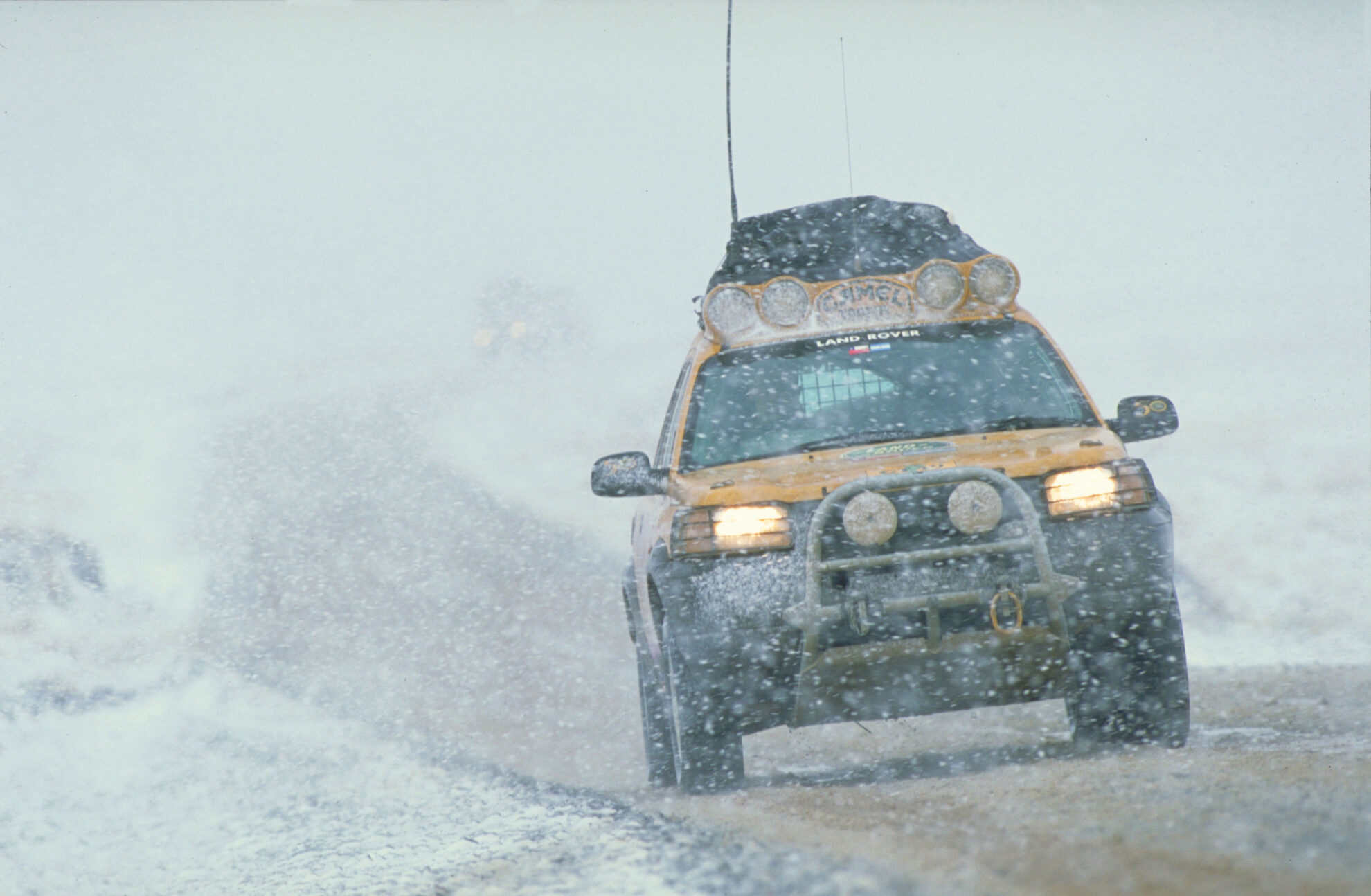 Instead of traveling in convoy, each team would set off alone in a newly-launched Freelander as their vehicle, equipped with Garmin GPS and EPIRB homing beacons. A Defender 110 support vehicle, driven by previous years’ competitors, stocked with spare parts and carrying journalists, would accompany each team. The distance covered — over 5,000 miles — would comprise the longest Camel Trophy to date, likely in the most inclement weather.