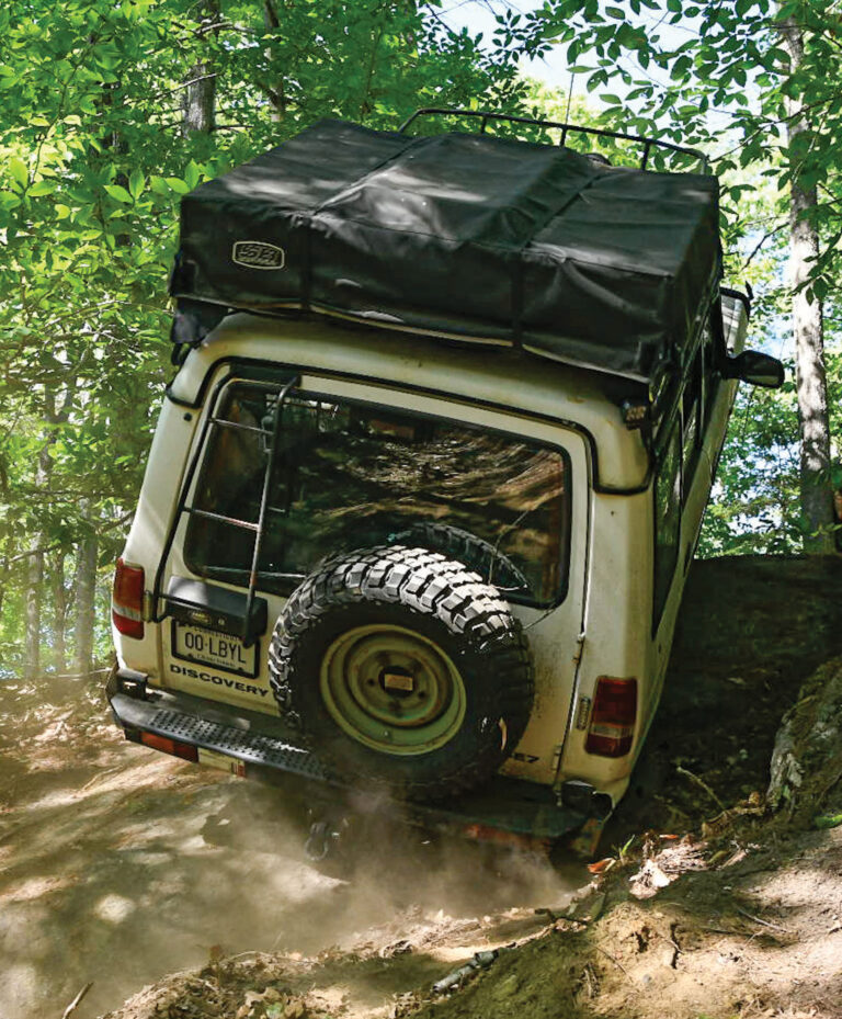 I asked Noel Bishop, Fletcher, VT, to drive my Discovery while I photographed the run. On the ledge hill trail named “Gate Keeper,” I met Caleb McKenzie, Southington, CT, as he climbed the hill in his ‘96 Discovery I. He almost made it, until fetching up in a peculiar position on the steep incline. Noel and Rob Wollschlanger, Colchester, CT, quickly set a recovery winch line. Caleb remained relaxed, enjoying every moment!