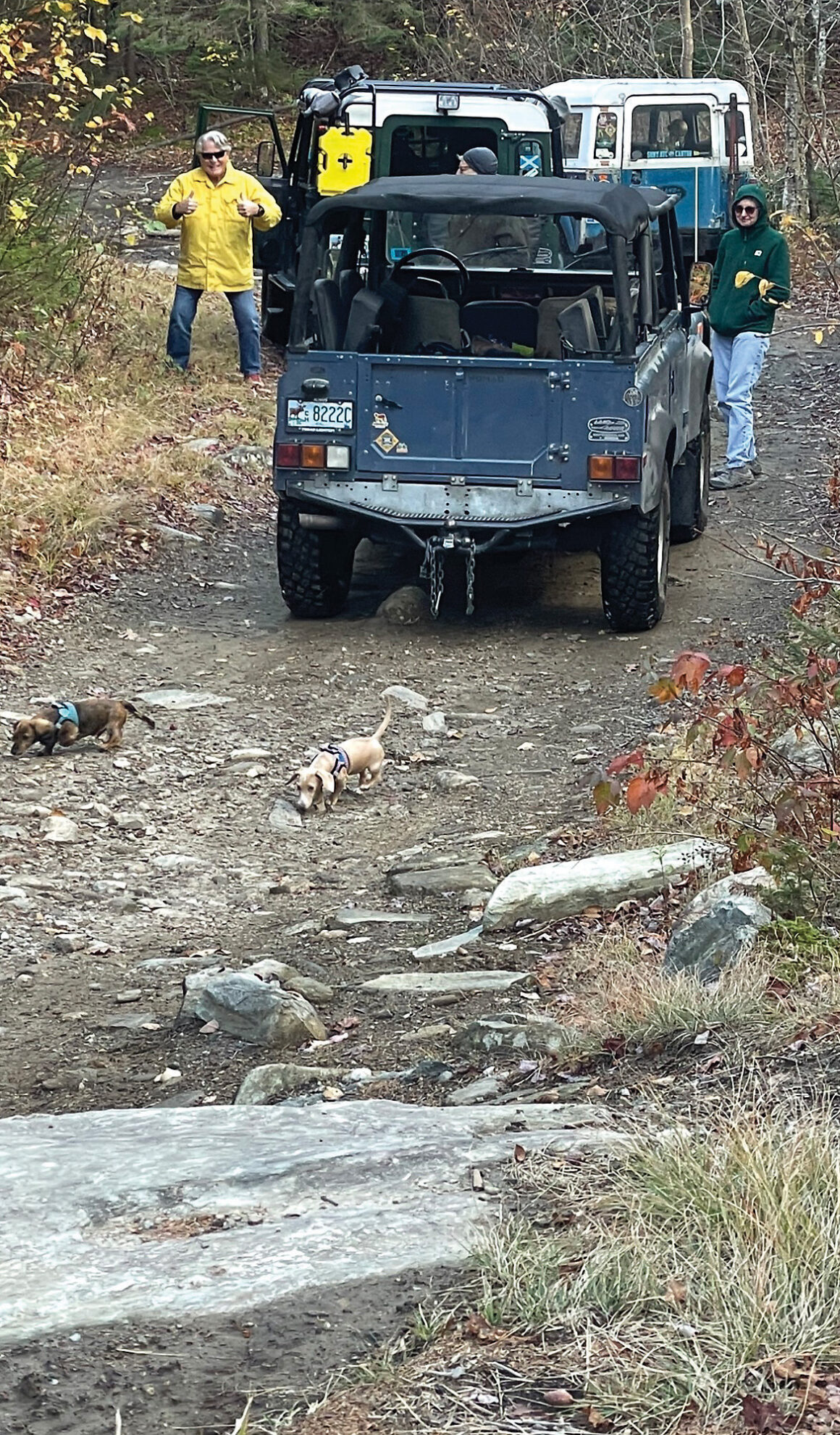 The Vermont Rover Club wrapped 2025 with one last late-Fall trail ride — a last-minute run with just a few Land Rovers but a great time nonetheless. Dave and Eileen Russ, Lyme, NH, with “Gadget,” their trusty Defender 90, and David Goddard and Heather Brady, Newbury, NH, with Otto and Jeff, their two mini dachshunds, joined the fun, and I led the group in “Spunky,” my 88’ Series III. We had a good ride on some challenging ledges, a few stops for refreshments and pictures on our favorite trails — overall, a nice finish for the year. But then, I believe that some of the best rides include only a few Rovers and some good old Vermont Class Four trails.